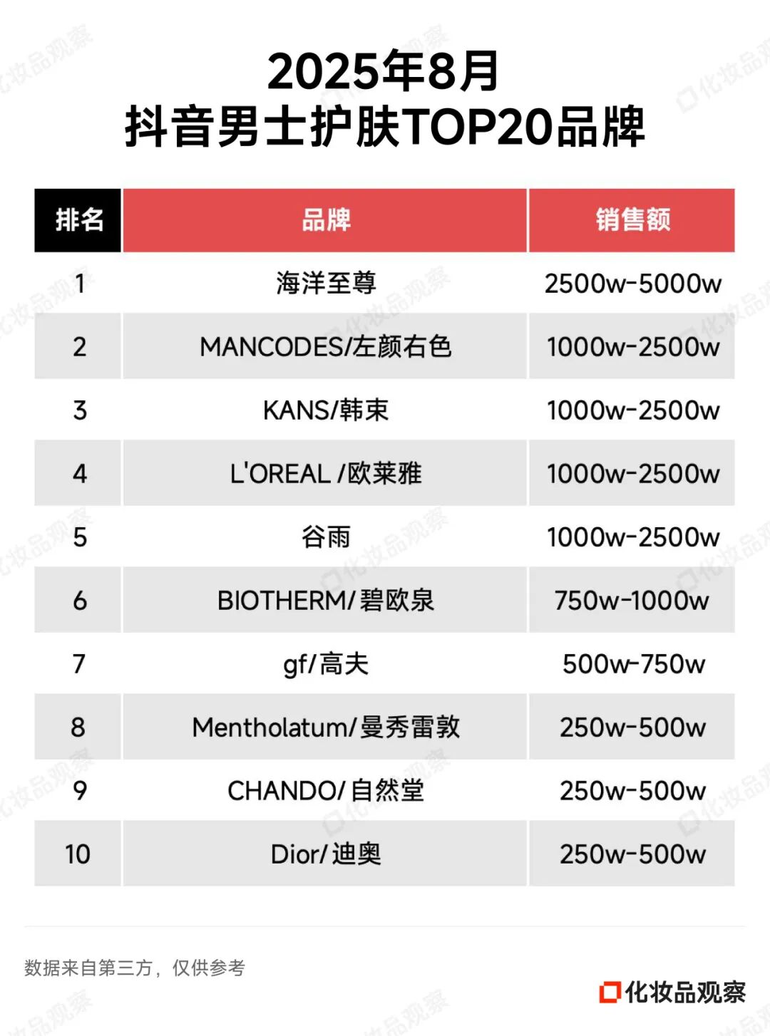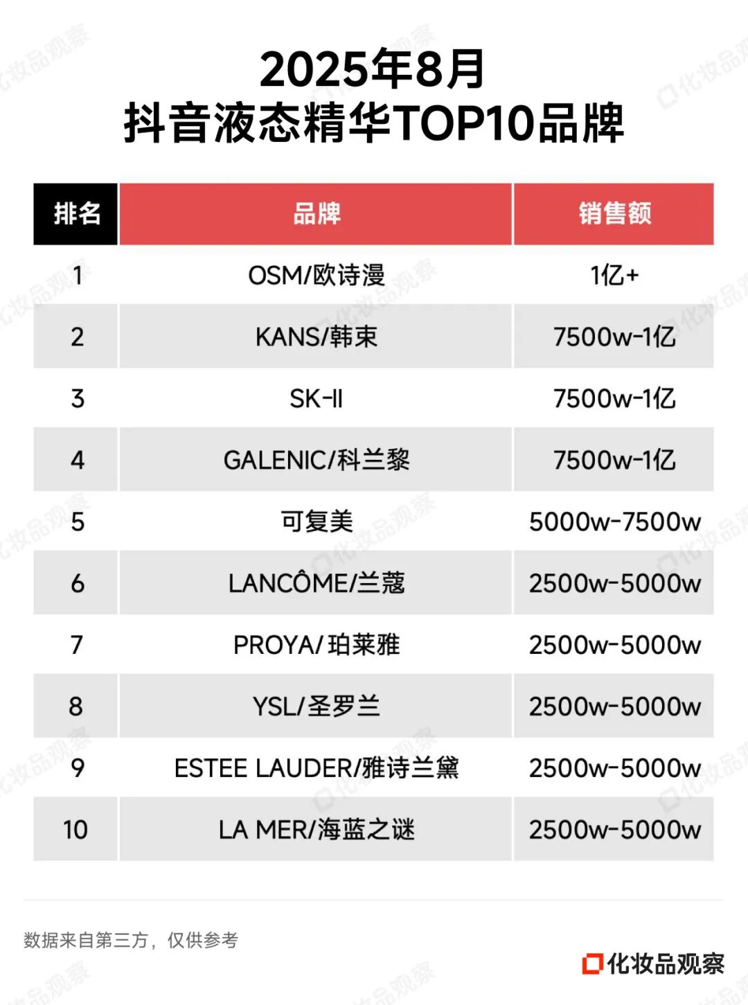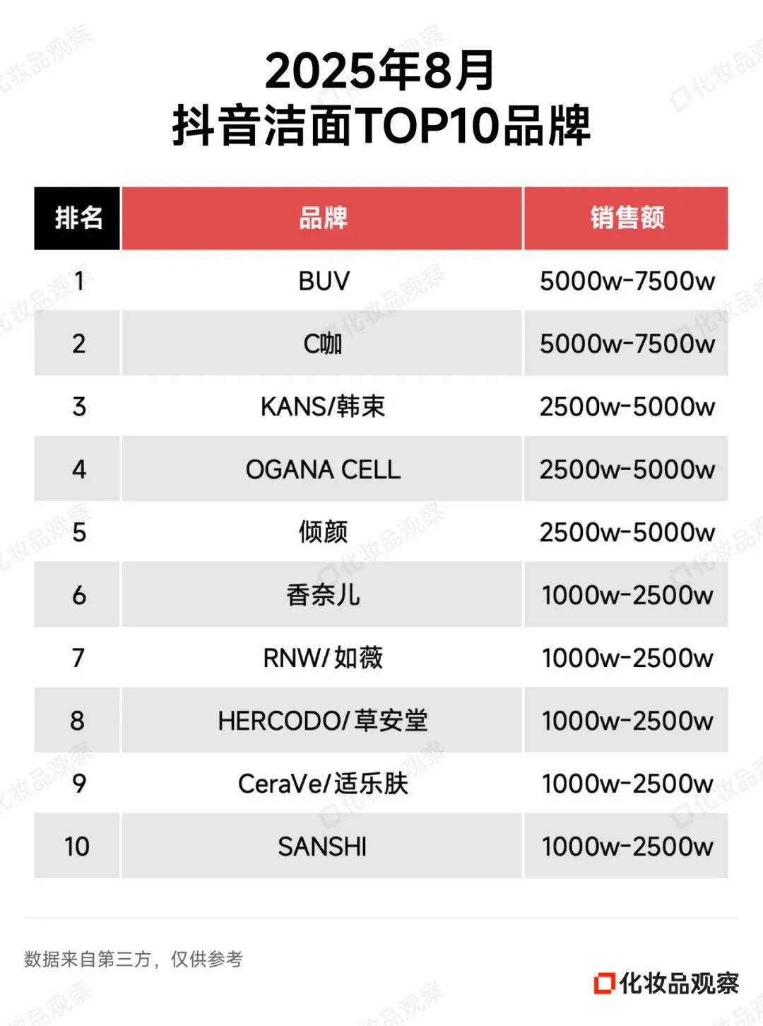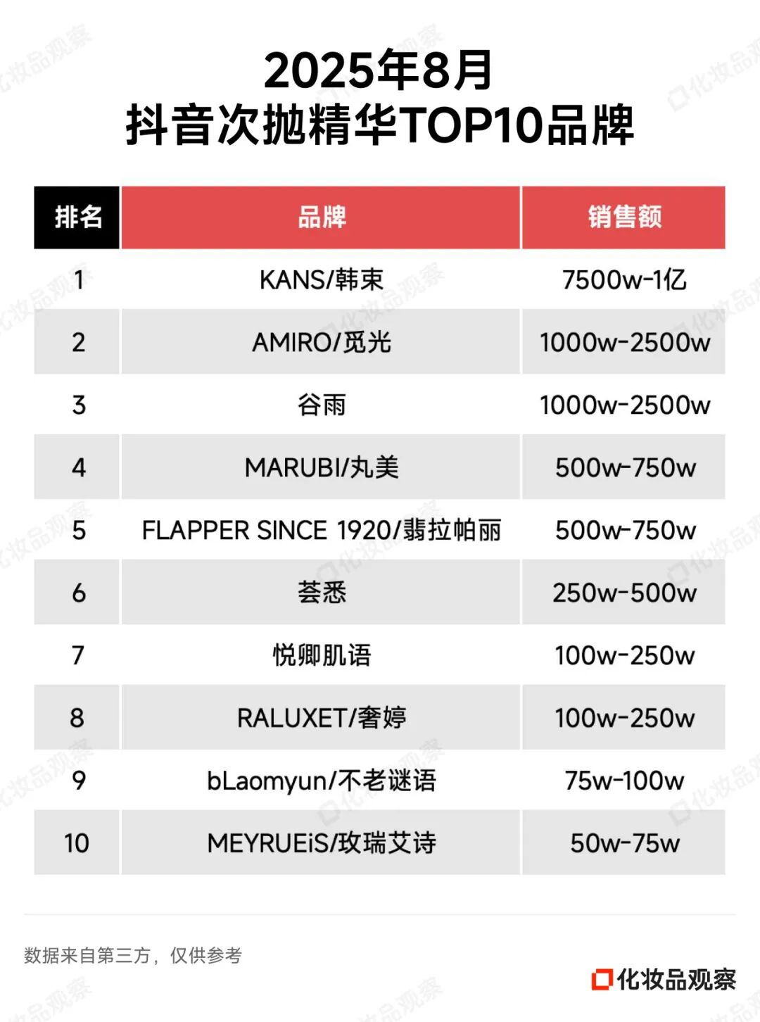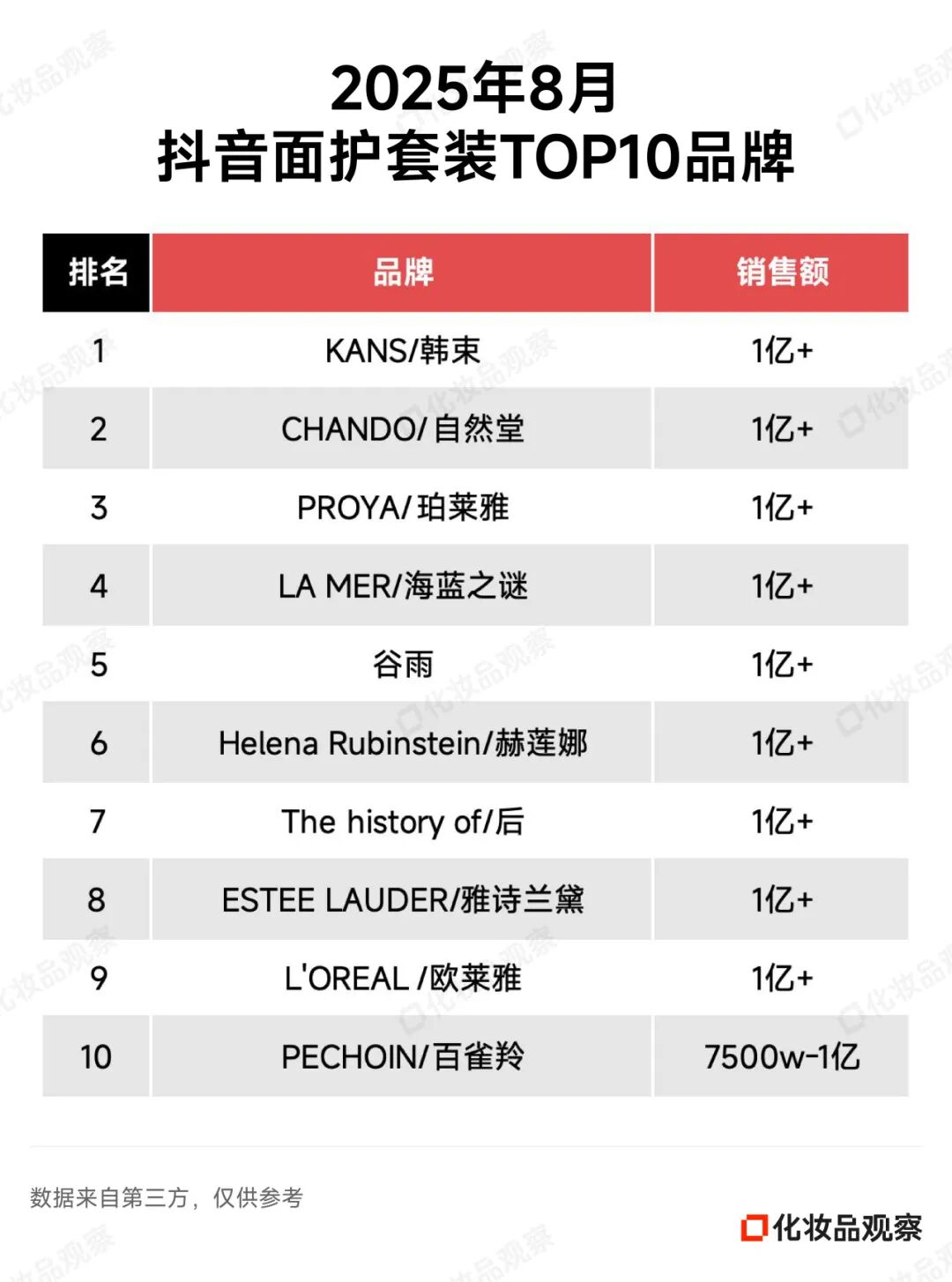 以8月抖音美妆排名为例——