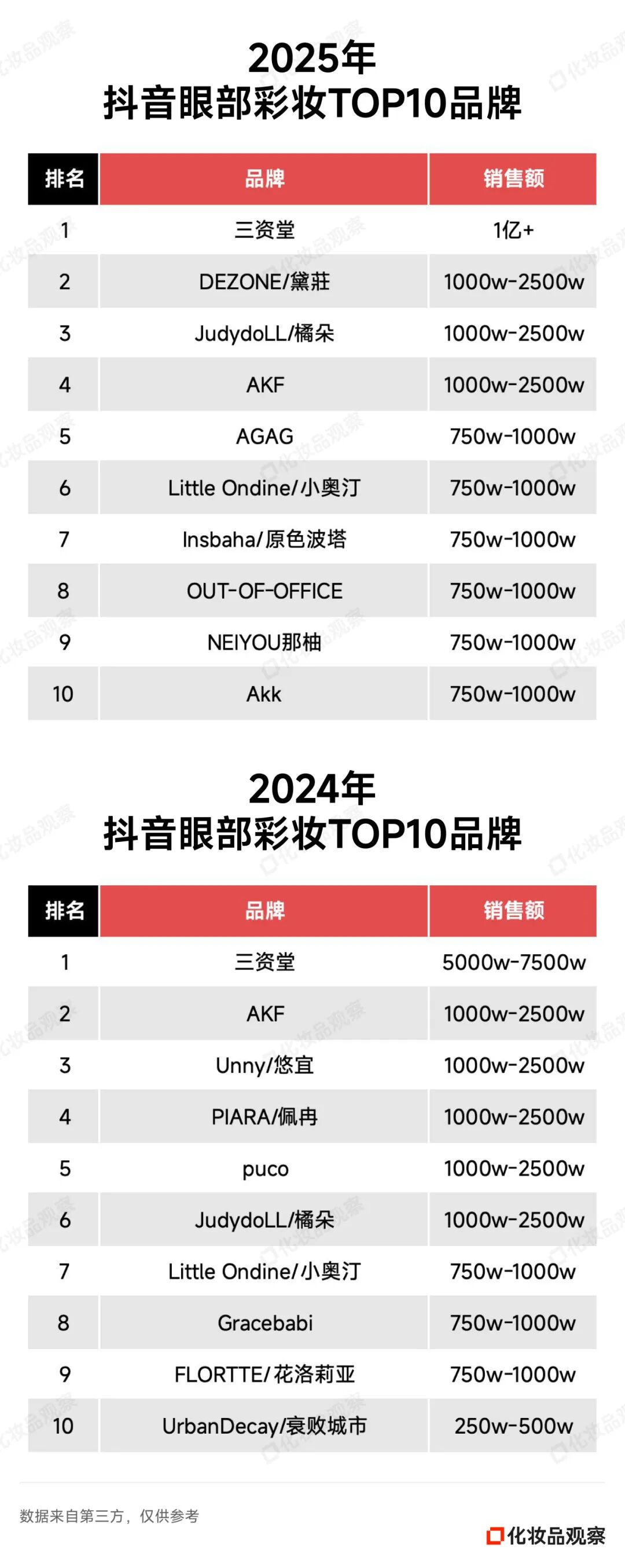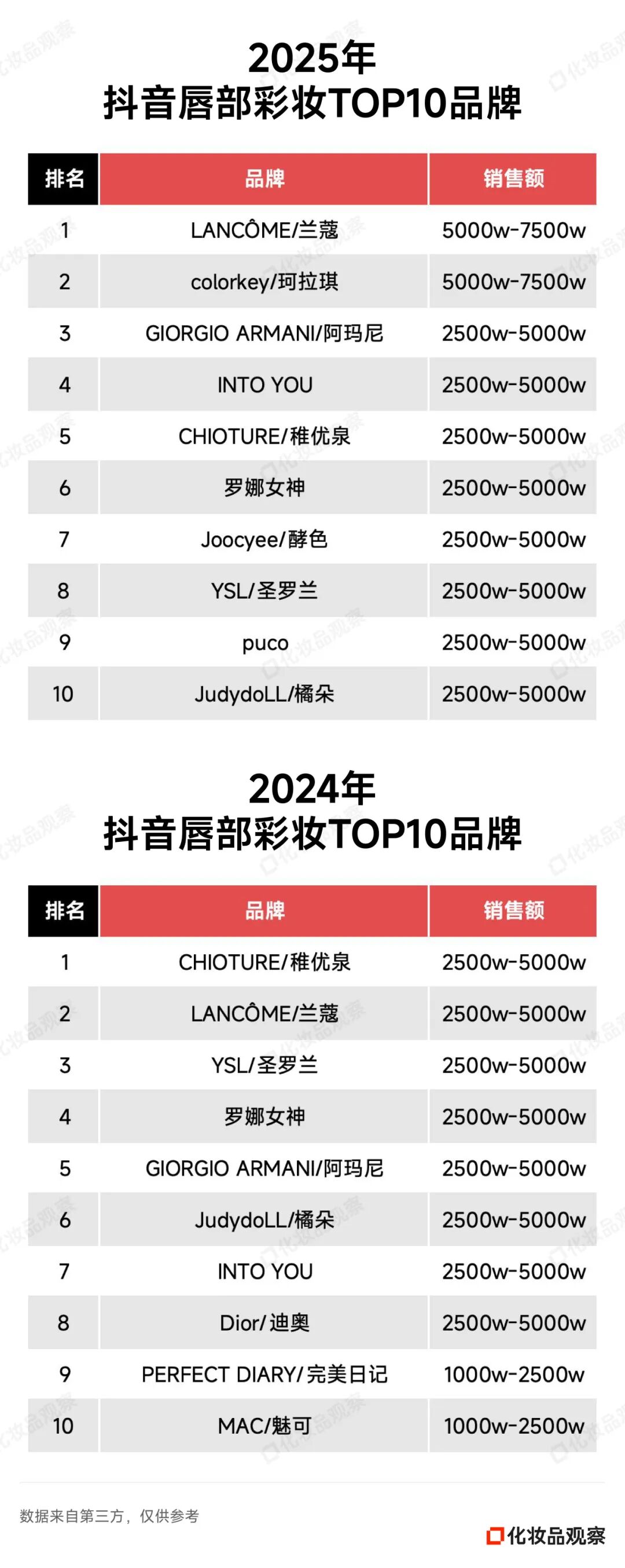 彩妆细分赛道TOP席位争夺战,比护肤细分赛道更为激烈。