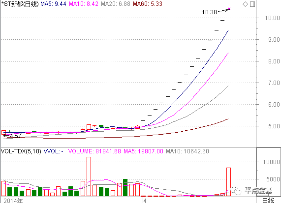 更加悲催的是,这个退市决定出来之前,新都酒店顶着ST的帽子,一口气涨了15个涨停板,但是涨幅只有5%,现在因为要退市,涨跌幅限制放宽到了10%!