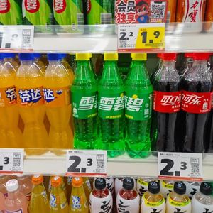 500ml的可口可乐、雪碧、芬达只卖2.3元,500ml的依能蜜桃水、蜜柠水卖1.6元,550ml的康师傅喝开水卖1.2元,娃哈哈AD钙奶低至0.88元一瓶……
