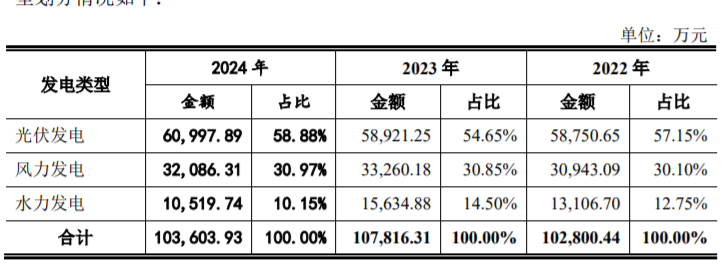 陕西水电主要运营的发电业务的类型划分为光伏、风电、水电业务,其中,光伏发电占2024年总营收比重近六成。