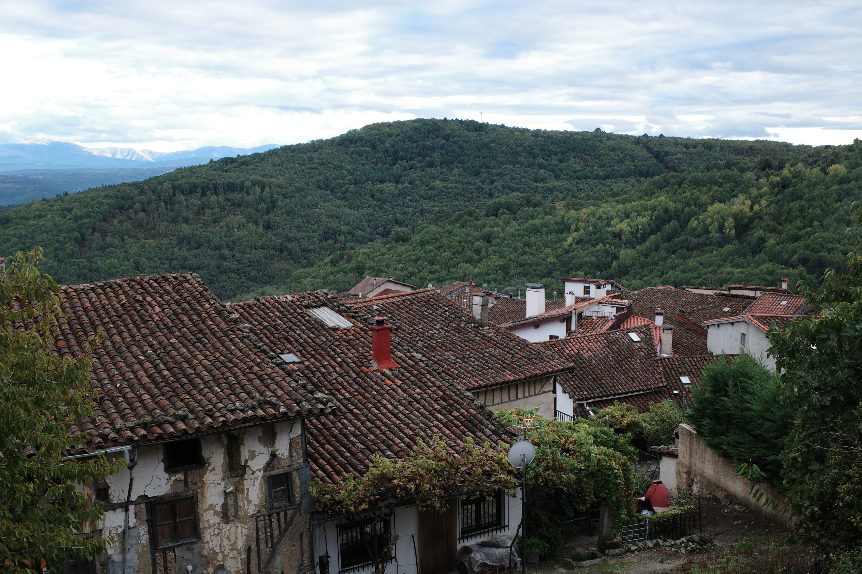 通往萨拉曼卡南部的深山一隅,莫加拉斯(Mogarraz)是西班牙葡萄酒之路上一个形状狭长的村子。村中遍布木骨结构的老房子,暮色中金色的风和光,渗透在老墙垣的石缝里。