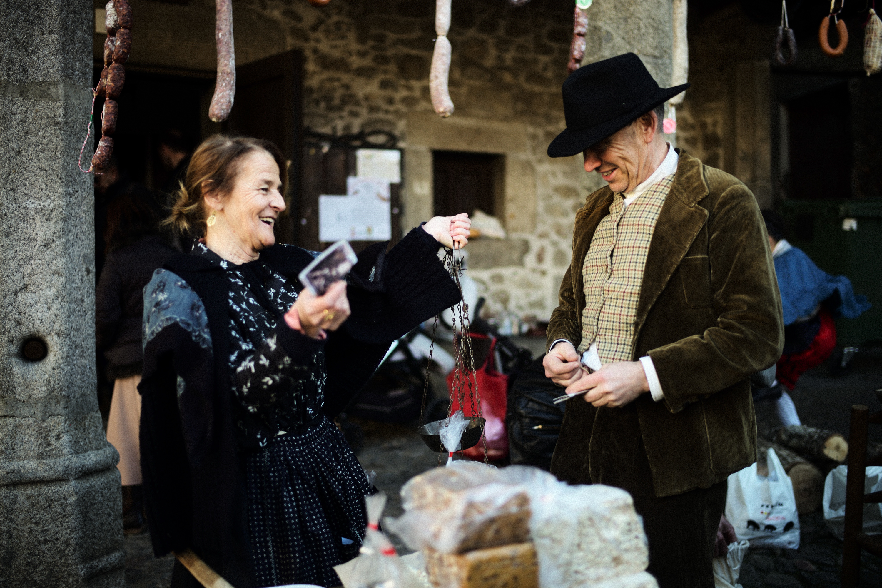 老妪与少女,挽起发髻,长裙及地,每个人都搭着祖母辈的绣花马尼拉披肩,婀娜的流苏垂到腰间。男士则穿着古老的刺绣衬衫、呢绒西装或者猎装,回到农人、乡绅或是骑士的身份,盛事的推动者费尔明家族的老小也一身古典服饰。人们跳着萨拉曼卡传统的查拉达对舞,用古钱币购买甜点与蜂蜜,连灌肠的配方和小贩们吆喝的句子都是老的。传统在这里正在被享受和续写,而传统也稳稳地托住了一个小镇的身份。