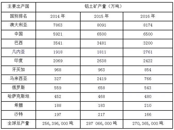 与全球第一的储量相比,几内亚铝土矿产量并不多,2016年,几内亚铝土矿产量为2761万吨,超过印度,成为全球第四大铝土矿产出国,落后于澳大利亚、中国和巴西。