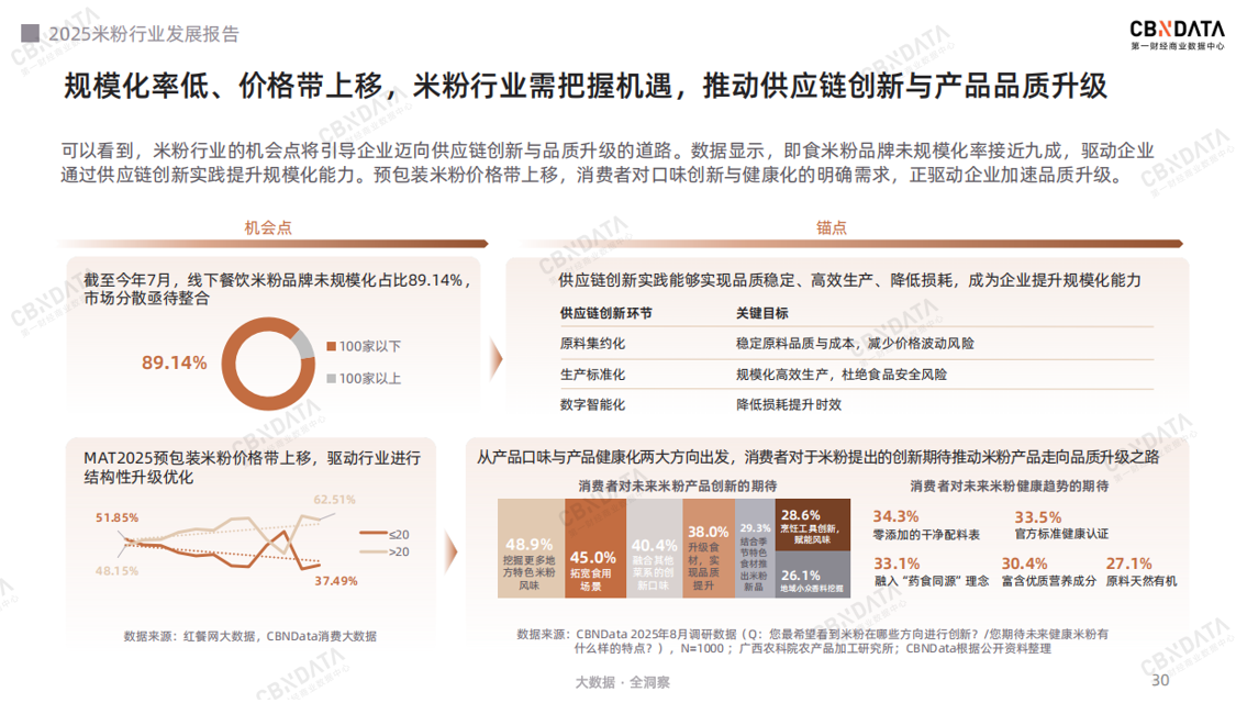 在此背景下,第一财经商业数据中心(CBNData)发布《2025米粉行业发展报告》,通过系统梳理米粉上下游产业链,聚焦核心人群与创新趋势,透过数据揭示行业市场规模与竞争格局,并展望未来发展机遇。