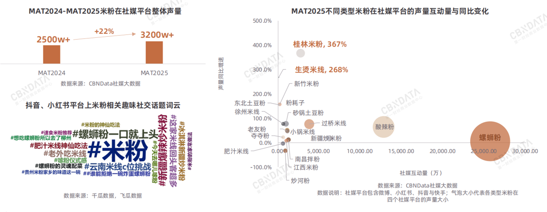 伴随着米粉全产业链布局的日趋完善,这一传统品类也一步步从街头小吃迈向千亿级规模化市场,也成为社交媒体上倍受讨论的“美食顶流”之一。