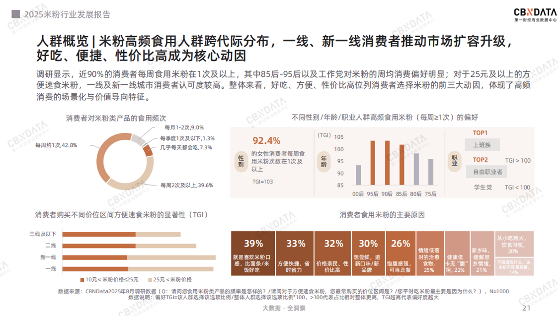 产业侧的品类创新与供应链升级,最终都是为了精准回应人的需求。因此,只有深刻理解“人”,才能真正把握米粉产业未来的生长动力。那么,当下米粉的消费者究竟有着怎样的偏好与诉求?