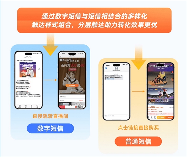 同时,通过慧博科技的 “分时触达 + 内容适配 + 多样化短信触达” 能力:早午晚分时推送强化用户认知,各阶段匹配 “满减免单”“新品礼盒” 等内容,还以数字短信(跳转直播间)、普通短信(直接购买)的组合分层触达,提升转化效率。