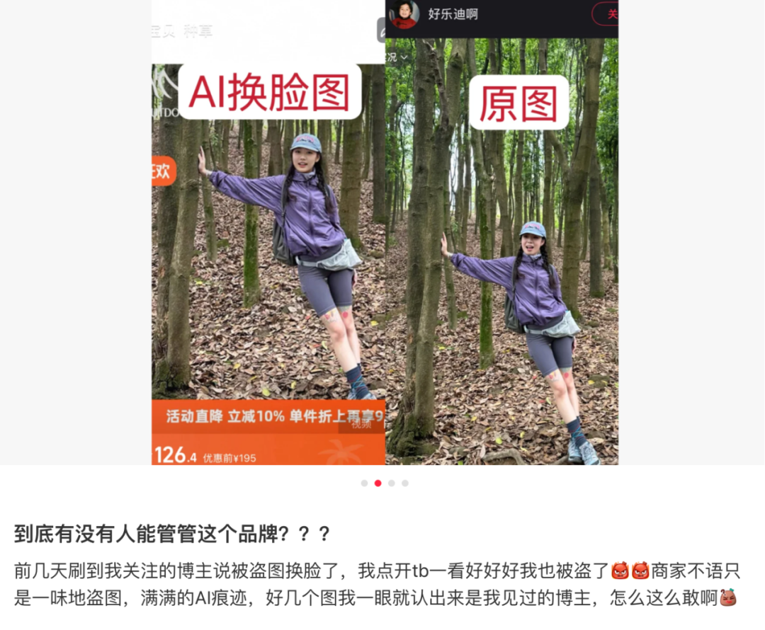 从去年开始,淘宝等电商平台上出现了部分用 AI 换脸或者 AI 生图技术生成产品展示图的商家,或者在评论区也明晃晃放着 AI 图片。