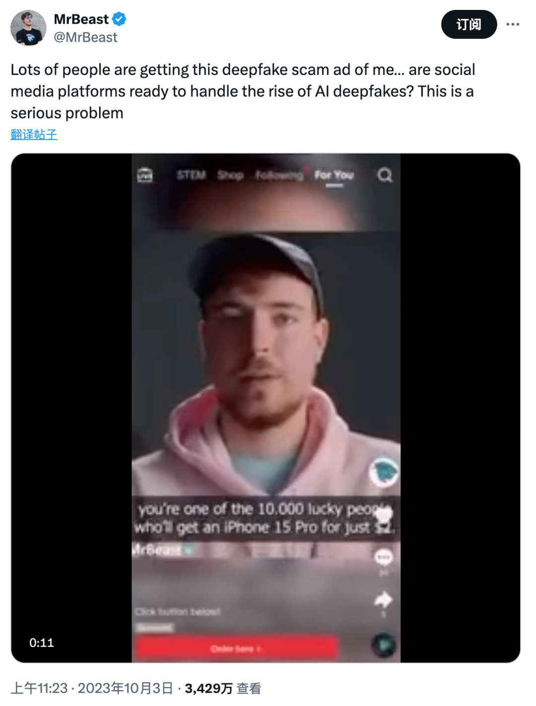 MrBeast被 AI 换脸伪造代言视频