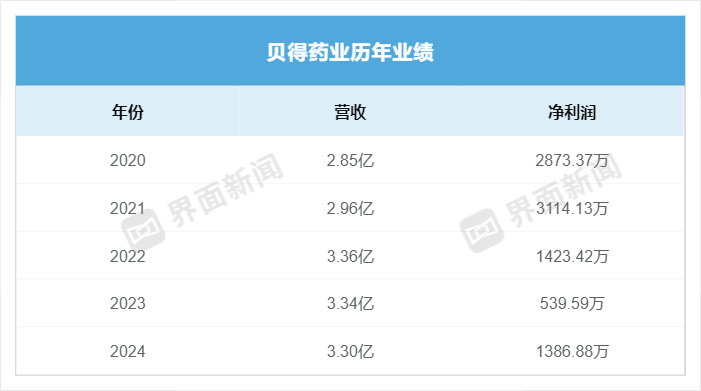 此后三年,贝得药业营收连续在3.3亿元左右徘徊,净利润也在500万元-1500万元之间浮动。