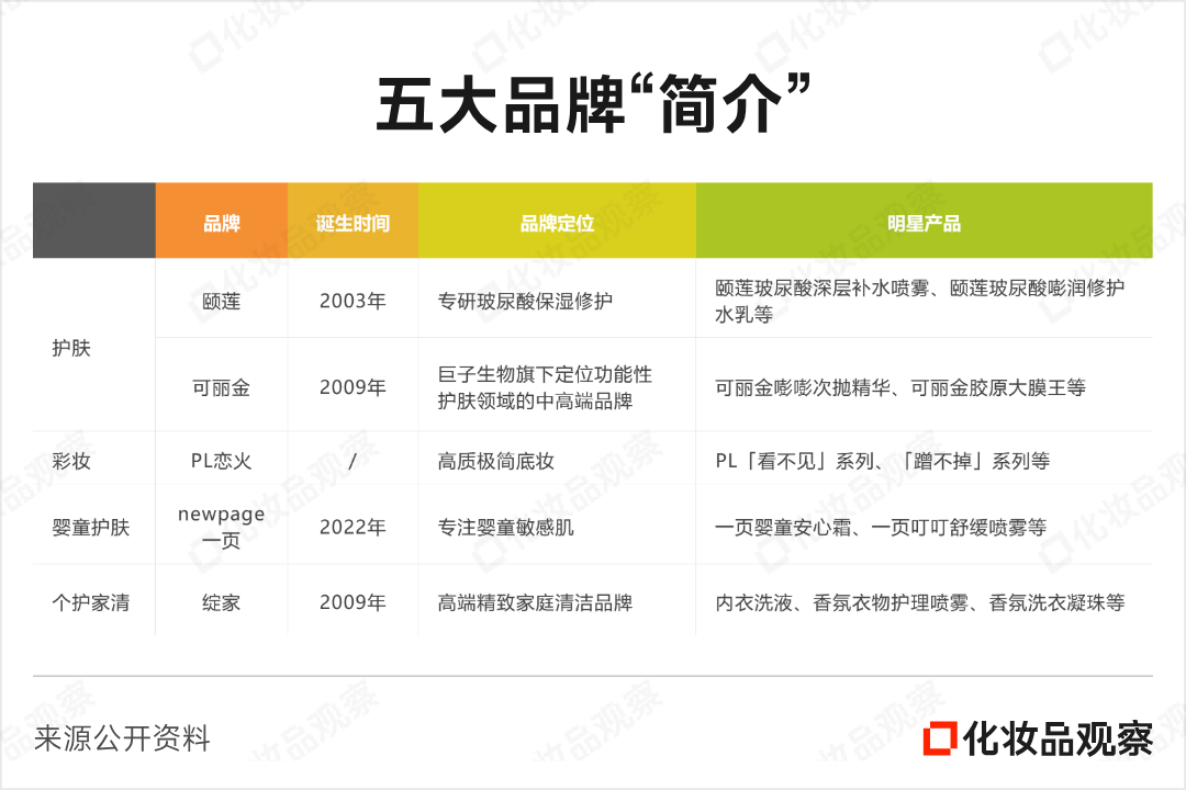 这些品牌横跨护肤、彩妆、婴童护理、个护家清等多个赛道,组成了一股不可忽视的“新势力矩阵”。