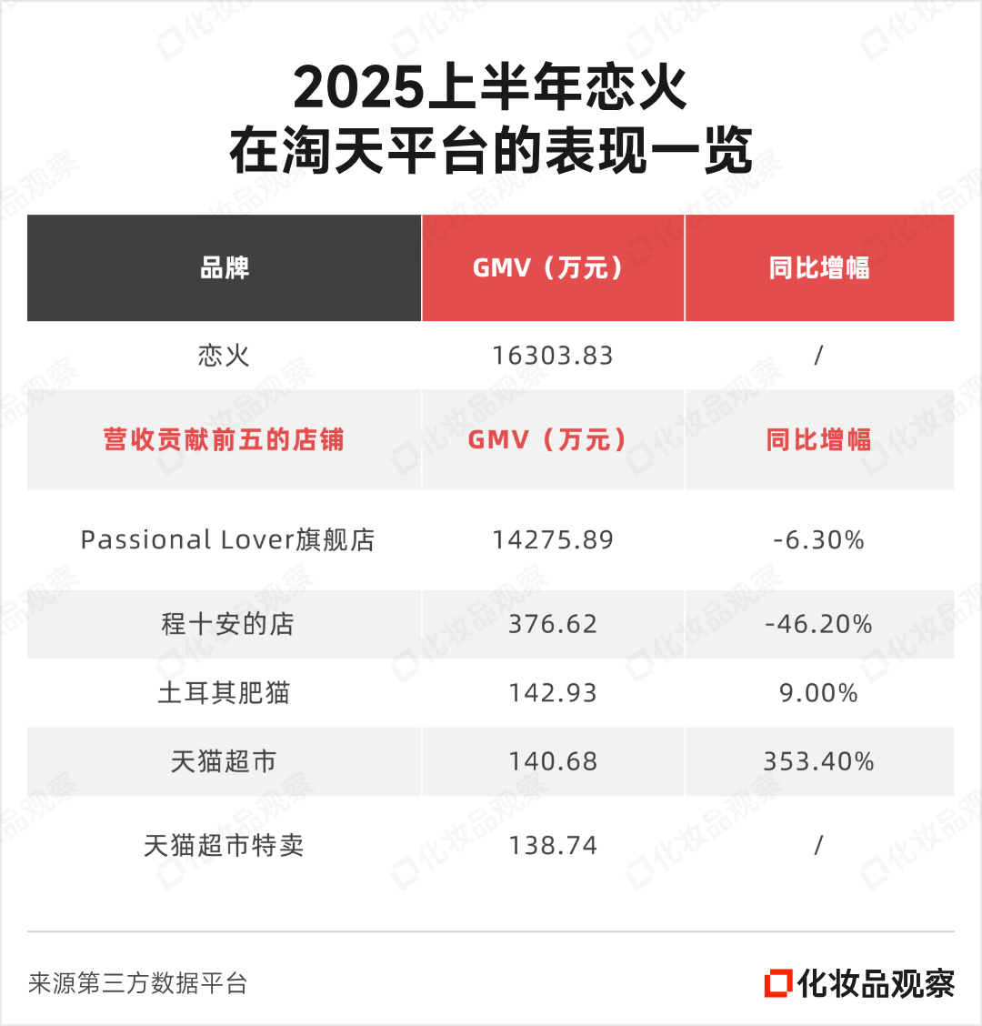 与众多美妆品牌一致,上述品牌重点渠道依然放在线上,例如,恋火仅仅「618」期间,线上GMV便突破3.5亿。