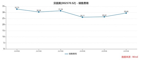 乳业分析师肖林鹏对界面新闻记者表示:“销售费用率飙升这一现象,是贝因美品牌溢价能力不足的现状。公司仍需依靠高额促销费用保份额,一旦未来原料价格反弹或行业价格战重燃,当前的利润弹性恐将迅速回吐,实现盈利又将变得艰难。”