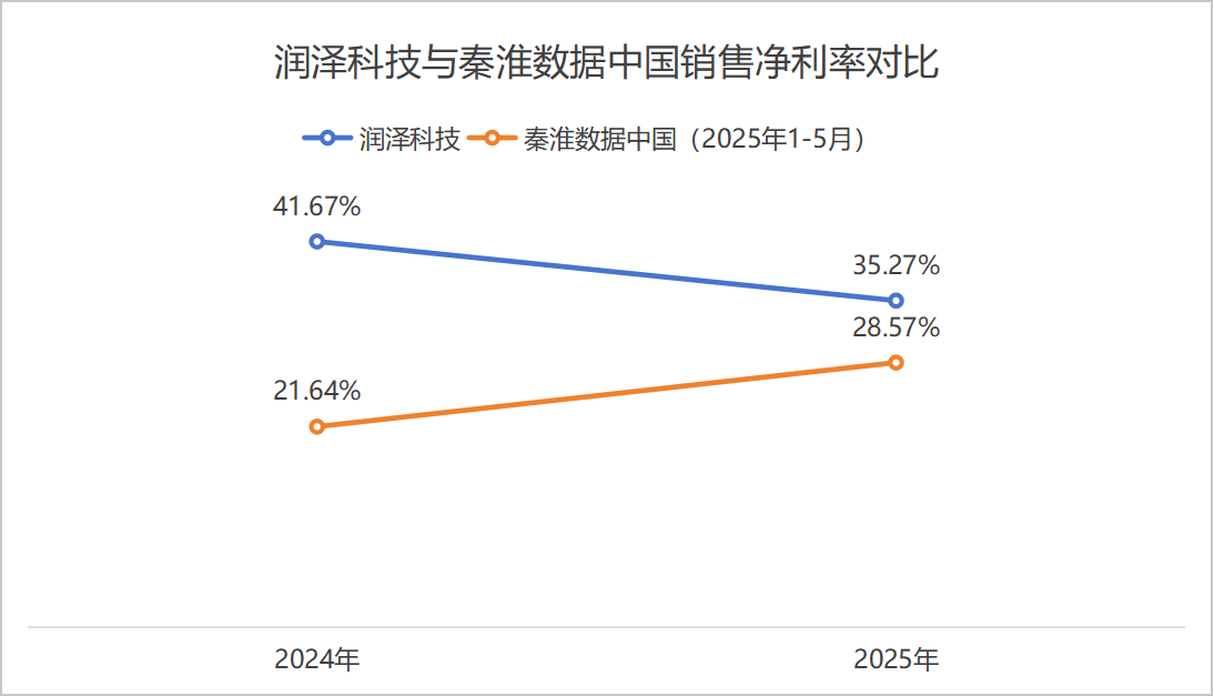 润泽科技2024年和2025年上半年销售净利率分别为41.67%和35.27%,销售毛利率接近50%。其2024年以43.65亿元的营收,取得了17.90亿元的归母净利润,营收更低,利润更高。