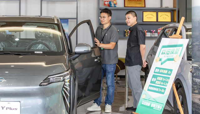 2025年9月11日,顾客在江苏海安经济技术开发区一家汽车销售门店内了解选购汽车,咨询“以旧换新”补贴政策。图片来源:CFP