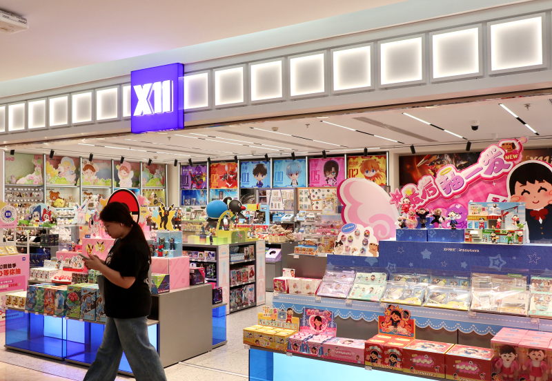 沿着南京路步行街向东,还集聚了TOP TOY全球首家旗舰店、名创优品MINISO全球壹号店、三丽鸥快闪店、卡游首家城市旗舰店等多家二次元、潮玩人气店铺。