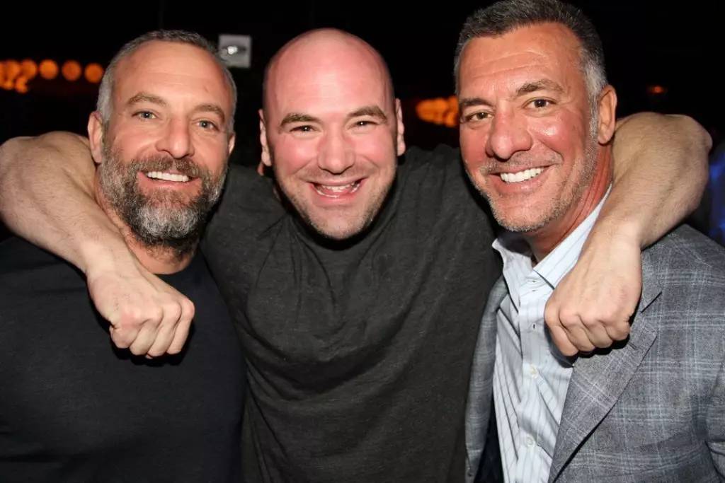 ▼菲尔蒂塔兄弟与UFC功勋总裁白大拿(中)一起带领UFC走出低谷、走向巅峰