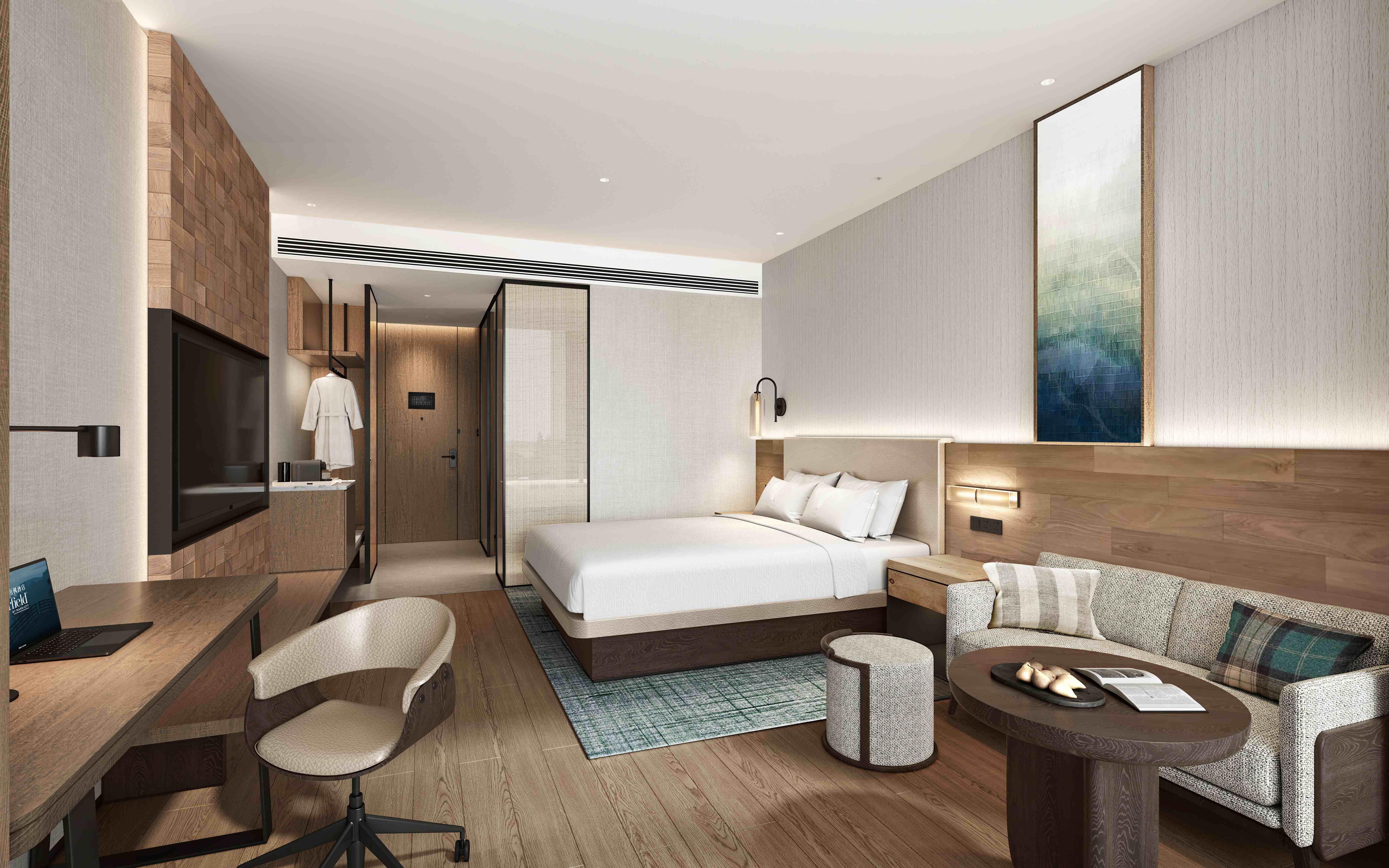 今年八月,品牌中文名正式焕新为“万豪万枫酒店”,让消费者能更直观地感知其与万豪国际集团的紧密关联,进一步强化品牌认知。同时,以“自然简约之美”为理念,将蓝岭山脉的自然风光融入空间设计,与传统商务酒店相比,提升了自在与舒适感,在同类型酒店中形成了差异化定位。