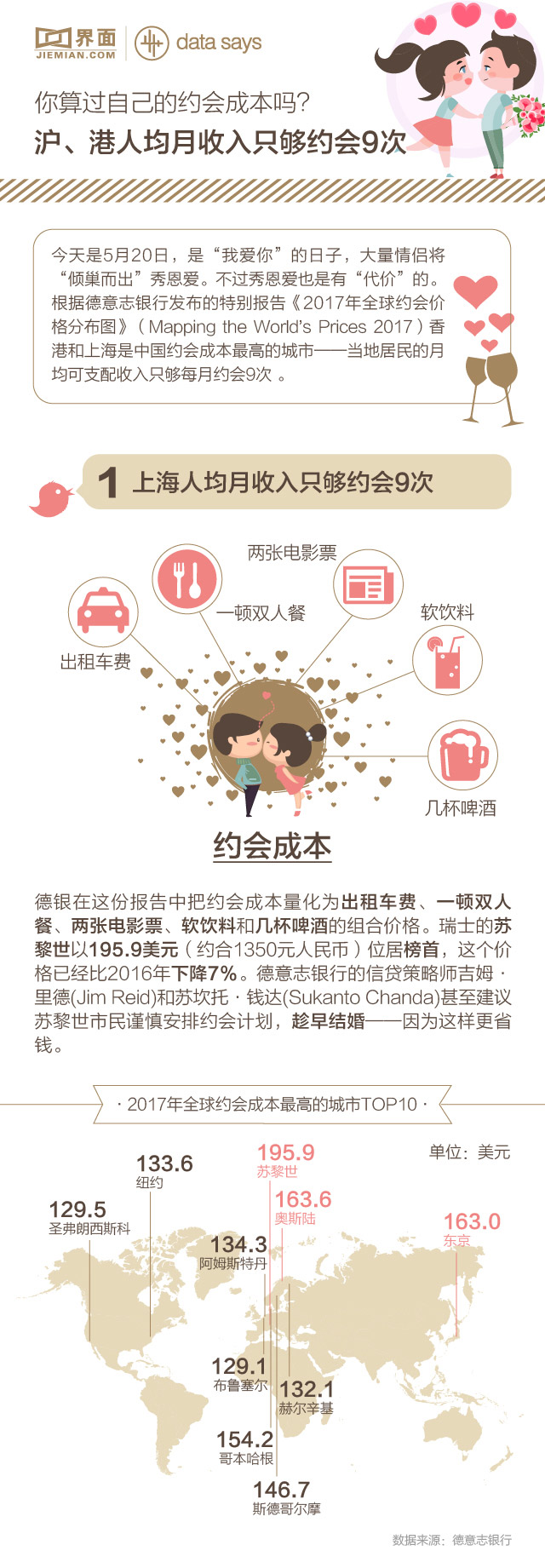 【图解】你算过自己的约会成本吗? 沪、港人均月收入只够约会9次