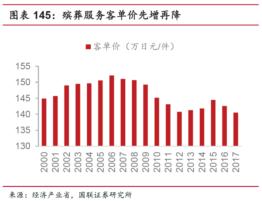 家庭葬礼、小型葬礼等小型化、低成本的简易葬礼需求增加,从而使日本殡葬服务客单价出现下降趋势。