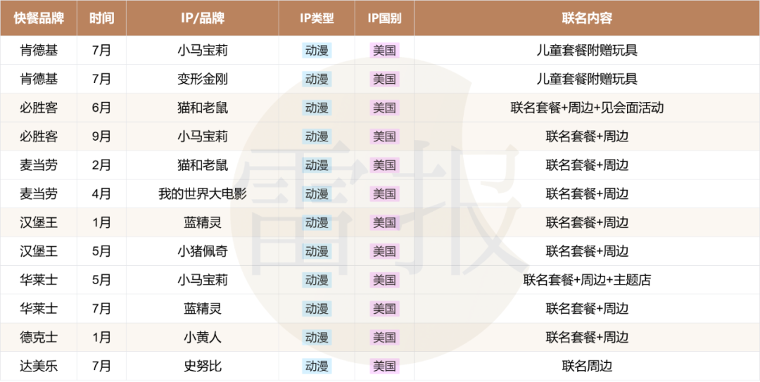 具体到IP方面,这些快餐品牌都倾向于选择哪些IP呢?