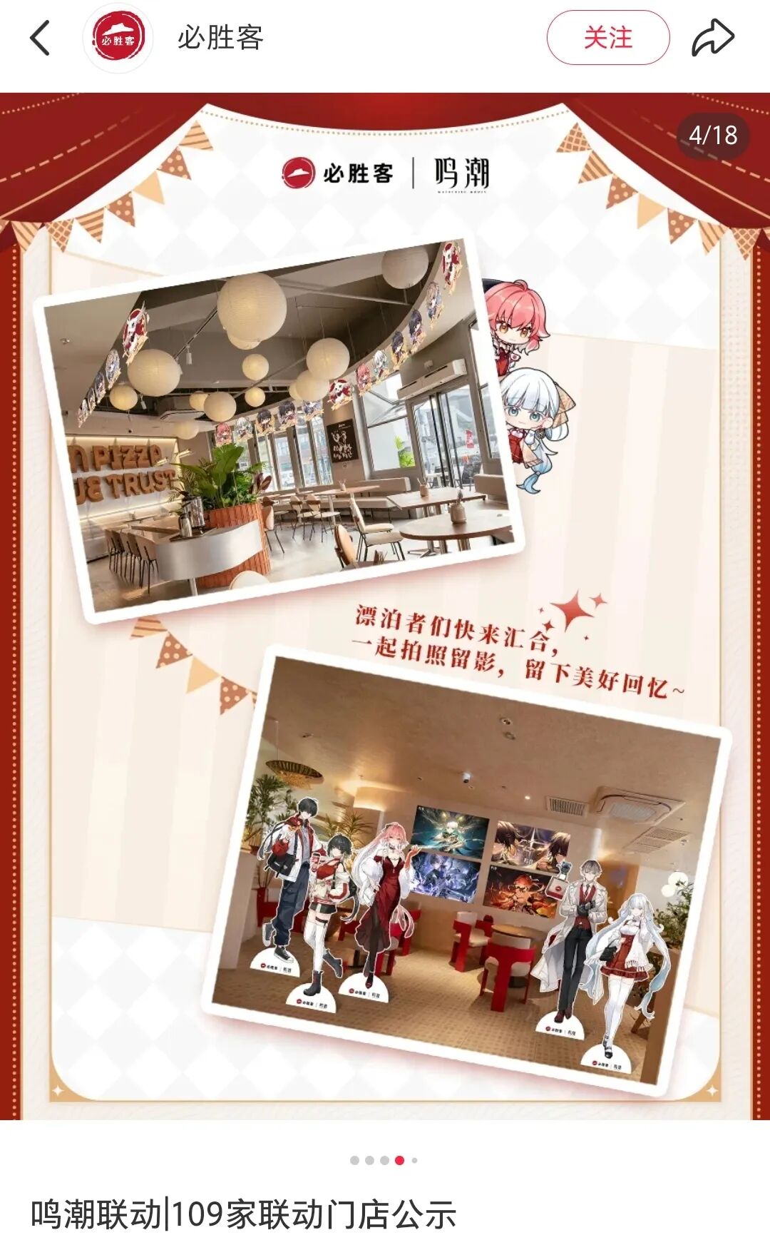 例如,必胜客与“鸣潮”的合作就推进了众多联动狂欢策划,包括:在上海,有百联ZX造趣场的主题快闪和五角场万达裸眼3D大屏;在广州,有痛车巡游和中信大厦的灯光秀;一日店长活动则将在5座城城市的特典店举行,并共邀请了17位Coser达人;主题店更涉及必胜客全国的109家门店。肯德基与原神在今年6月的联名更打造897家主题店,并在上海环球港举办了古堡舞会特别快闪活动。同时,还能通过购买套餐获得游戏礼包,玩家可以在游戏内自行兑换获得一个跟宠和其他食谱道具。