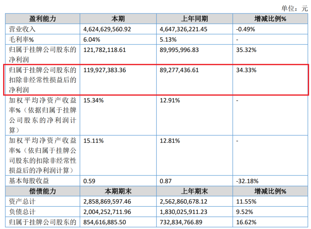 在上半年联名次数中位列第三的华莱士,其在新三板挂牌的主体名称为“华士食品”。从该主体最新披露的半年报数据来看,其上半年实现扣非归母净利润1.20亿元,较上年同期增长34.33%。