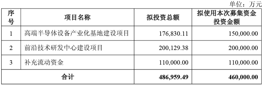 “未来,随着市场需求的不断增长、芯片工艺的持续迭代与国产化率的不断提升,公司目前的产能预计无法满足未来客户的订单需求。”因此,本项目将通过建设新产线的方式增加公司高端半导体设备的生产能力,缓解公司未来产能瓶颈。