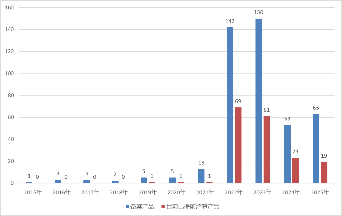 成立以来,博润银泰投资累计备案过440只产品,其中175只提前清算、9只正常清算、2只延期清算、1只投顾协议终止,以上4类产品合计占比42.5%。公司旗下另有29只产品2024年或者2025年向中基协最新报送的存续规模不足1000万元,4只产品截至2023年第2或者第4季度报送的存续规模不足500万元。