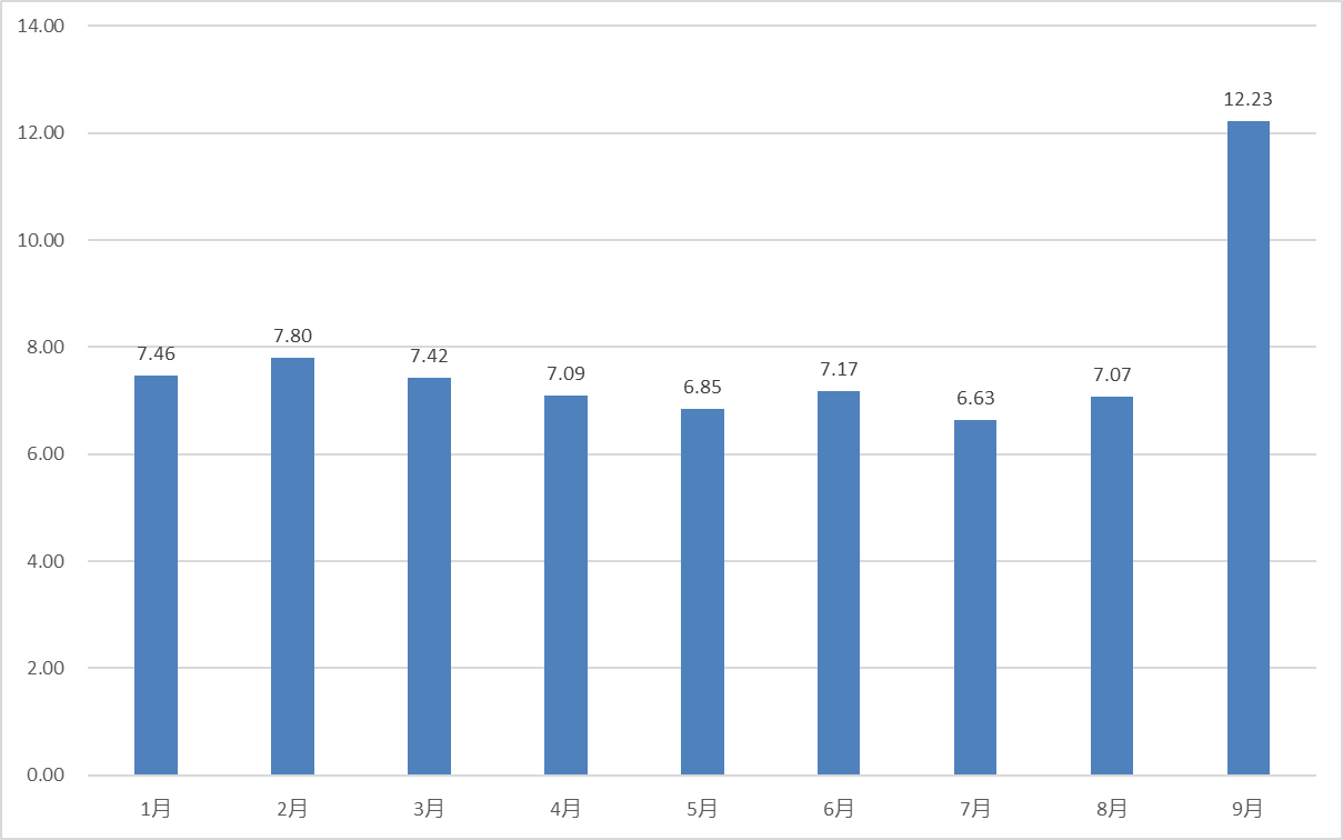 (上述备案用时为根据产品成立时间以及备案时间统计所得,已剔除非工作日,其中,9月的数据截至9月16日)