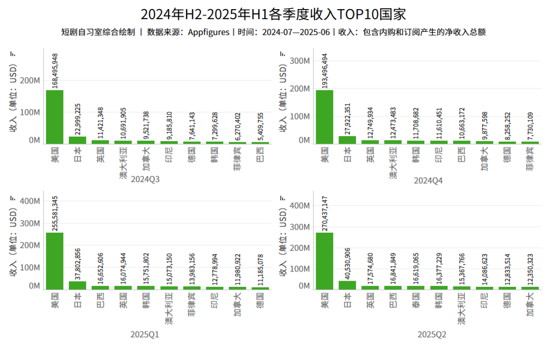 随着竞争的加剧和用户需求的多样化,寻找细分市场和差异化增量成为短剧出海的新共识。日本市场的开拓就是典型代表,两年前,日本短剧市场还是一片蛮荒,而到了今年上半年,短剧自习室的数据显示,这一市场已经是海外短剧第二大收入市场。