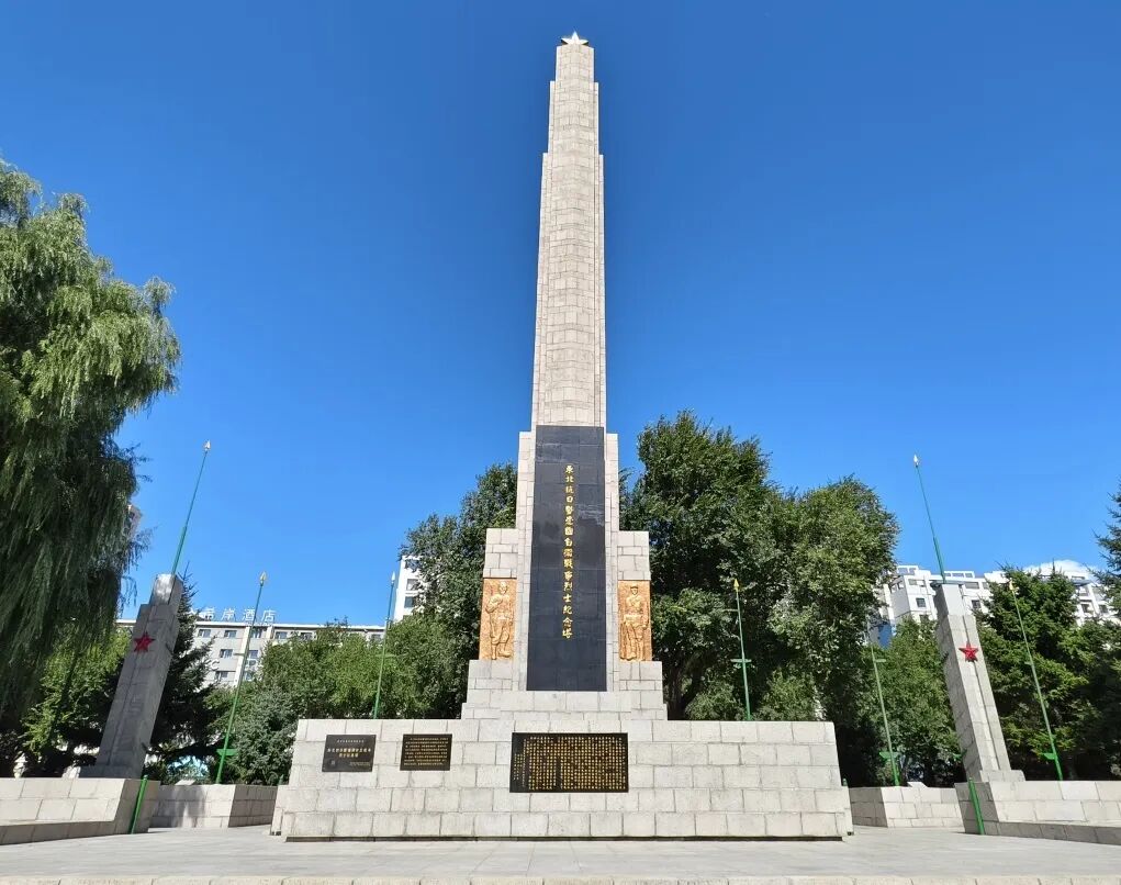 东北抗日暨爱国自卫战争烈士纪念塔是哈尔滨解放后修建的第一座大型纪念塔。1947年7月7日,纪念塔奠基典礼在道外八区公园举行,1948年10月10日纪念塔竣工。纪念塔为近代建筑风格,占地面积450平方米,塔身高31.1米,由花岗岩石筑成,呈阶梯式构造。正面下部刻有“东北抗日暨爱国自卫战争烈士纪念塔”镏金大字,东侧浮雕为革命战士手持刺刀、奋勇杀敌的场景,西侧浮雕为支前民兵运送弹药、担架队抢救伤员的场景,两侧浮雕融为一体,纪念塔顶部为“八一”红星。该纪念塔1999年被评为省级文物保护单位,是每年黑龙江省暨哈尔滨市烈士纪念日向英雄烈士敬献花篮仪式举办场地,是东北军民抵御外侮、争取解放的精神丰碑,发挥着缅怀英雄烈士、赓续革命精神的重大作用。
