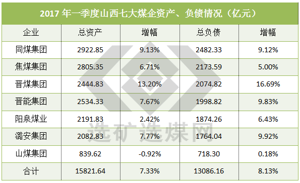 2017年第一季度,根据其财务报表,山西七大煤企的负债总额为13086.16亿元,这一数字也成功“超越”2016年山西省GDP,这个巨债的数目较2016年同期不减反增8.13%!