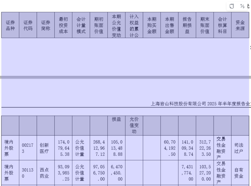 既然核心业务与 AI 新业务均不给力,岩山科技 81% 的净利润增幅从何而来?答案藏在 “投资收益” 中 —— 公司通过炒股获得的 “浮盈”,成为了盈利的关键支撑。