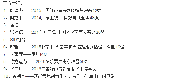 因此有网友总结了全球300强选手的身份,仅以西安唱区10强为例,有6位选手都曾参加过同类型的选秀节目,还有一位网易云原创音乐人,一位网红。