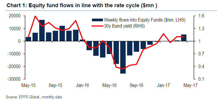 Mike Hartnett指出,欧洲股市基金连续第8周看到资金流入,但规模较一周前的纪录新高有所减少,本周有11亿美元资金流入。不过,本月以来,欧股基金资本流入规模创下2015年12月以来最大规模。