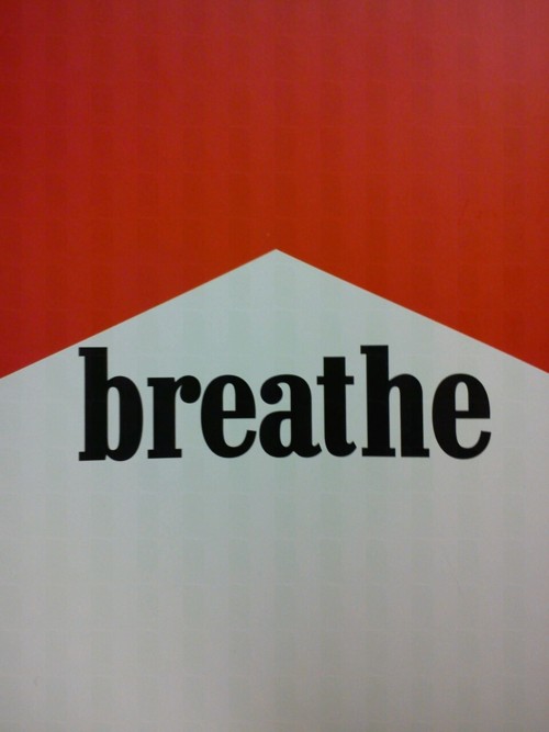 比如这个万宝路香烟的logo,上面却写着呼吸。▼