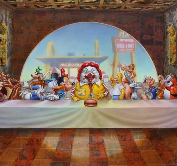 或者是脑满肠肥的麦当劳叔叔,和其他的卡通形象一起进行“最后的晚餐”。▼