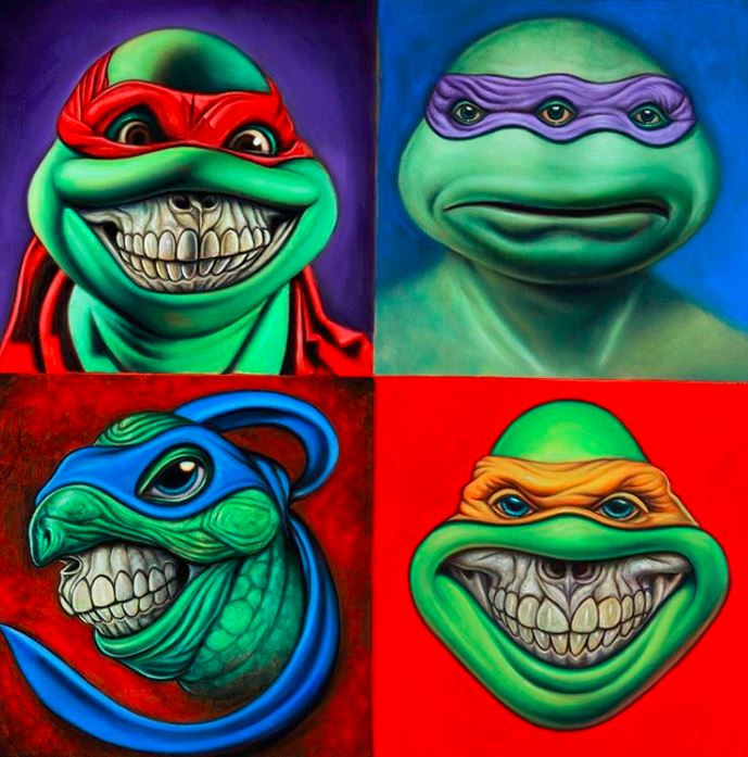 可惜,就是有一位专注毁童年的艺术家Ron English,喜欢给各种卡通形象都添上牙齿。