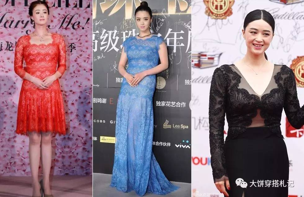 但是一穿衣你就会发现,因为长相是“王熙凤”类型的泼辣女人味儿,所以穿上“蕾丝”这种女人味十足的单品后,由于没有平衡感,整个人会一不小心就显得“俗气”。