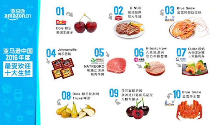 亚马逊中国今年1月发布的年度“吃喝白皮书”显示,牛排和海鲜正在成为餐桌新宠。在2016年最受欢迎的十大生鲜产品,进口海鲜就占据了3个。