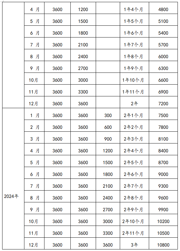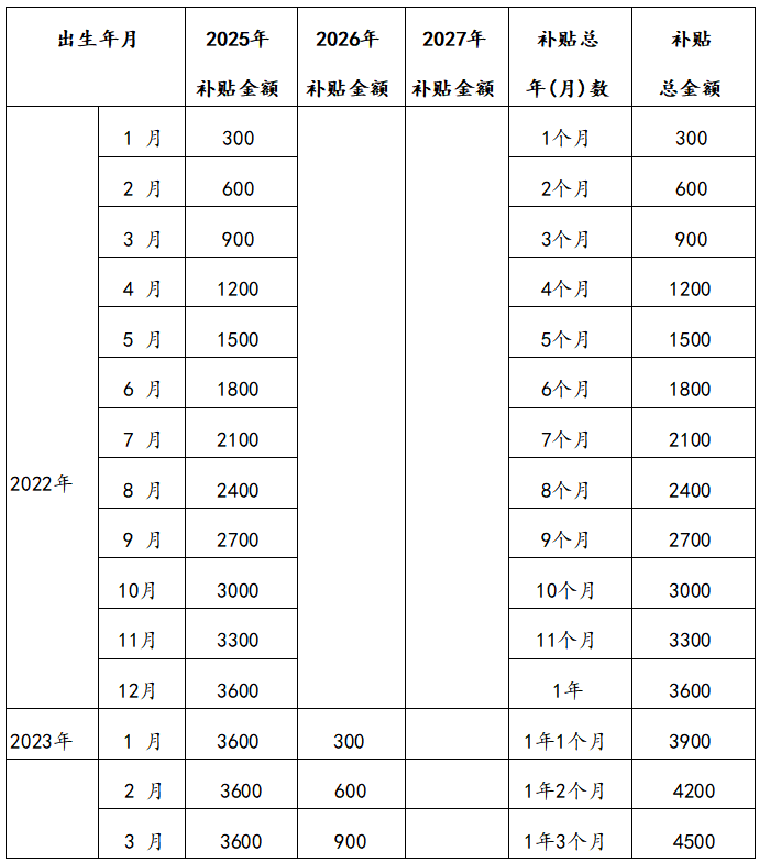 表1:2022-2024年各月份出生婴幼儿申领育儿补贴金额对照表