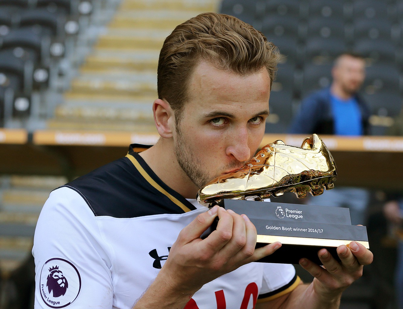 继2013年的范佩西之后,英格兰国脚凯恩成为又一位成功卫冕英超金靴的球员;他也是1999年的欧文后,首位卫冕英超金靴的英格兰球员。本赛季凯恩在30轮联赛打进29球,其进球数甚至比米德尔斯堡(27球)全队还多,与桑德兰(29球)全队持平。