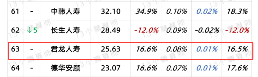 君龙人寿位居中小险企队列,其市场份额占比较小。