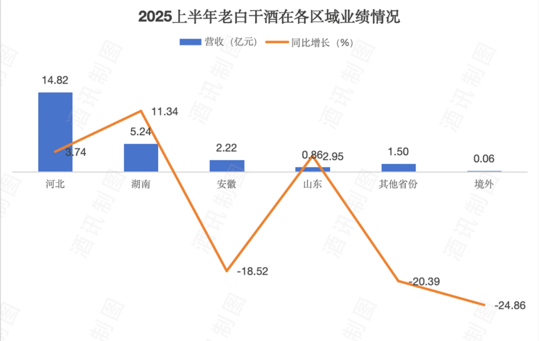 在2025年半年报中,老白干酒也谈及了自身的地区市场依赖风险:公司白酒产品主要销售地集中于河北、环河北地区、山东、安徽、湖南及其他地区,随着全国性品牌和主要区域性品牌在全国范围内的拓展,如果上述市场对白酒的需求量下降,或公司在上述地区市场份额下降,且公司未能有效拓展区域市场,则将对公司的生产经营活动产生不利影响。
