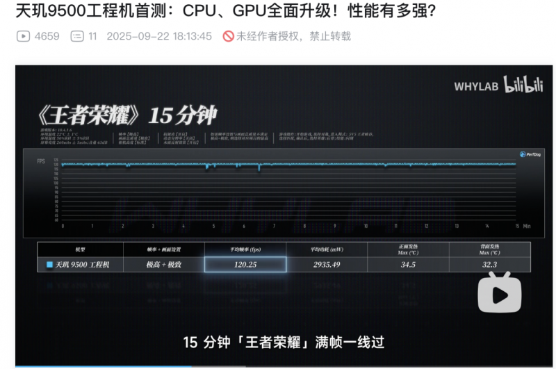 媒体WHYLAB 15 分钟王者荣耀满帧一线过,意料之中,重点是平均功耗只有 2.9W,