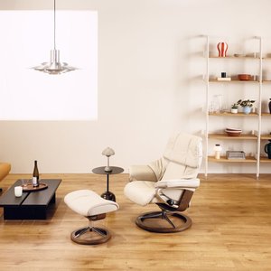Stressless®雷诺舒适椅,椅身采用Stressless®浅灰色维拉罗头层牛皮,保留了皮革的温润质感,又兼具透气亲肤的特性,久坐也能保持肌肤的舒适呼吸。更核心的是其搭载的三大 “体感黑科技”,Plus™自动调整支撑系统能根据身体姿态实时贴合肩颈、腰背与臀部,仿佛被 “量身定制” 的拥抱;Glide滑动系统让起身、落座时的动作如流水般顺滑,消解了传统座椅的 “卡顿感”;Balance™平衡调节系统则通过微妙的角度调整,让身体始终处于自然放松的力学状态,哪怕久坐几小时,也能维持脊椎的轻盈。