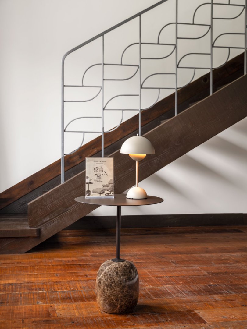 作为空间的 “光韵调度师”,&Tradition® Flowerpot柔砂灰便携灯以柔砂灰色的经典半圆为罩,灯光晕染出柔和如晨雾的光晕,像一层薄纱轻轻覆盖在角落的每一处。无线设计小巧便携,随手放置于座椅旁的边几之上,柔和光芒流转,为空间注入灵动气氛。