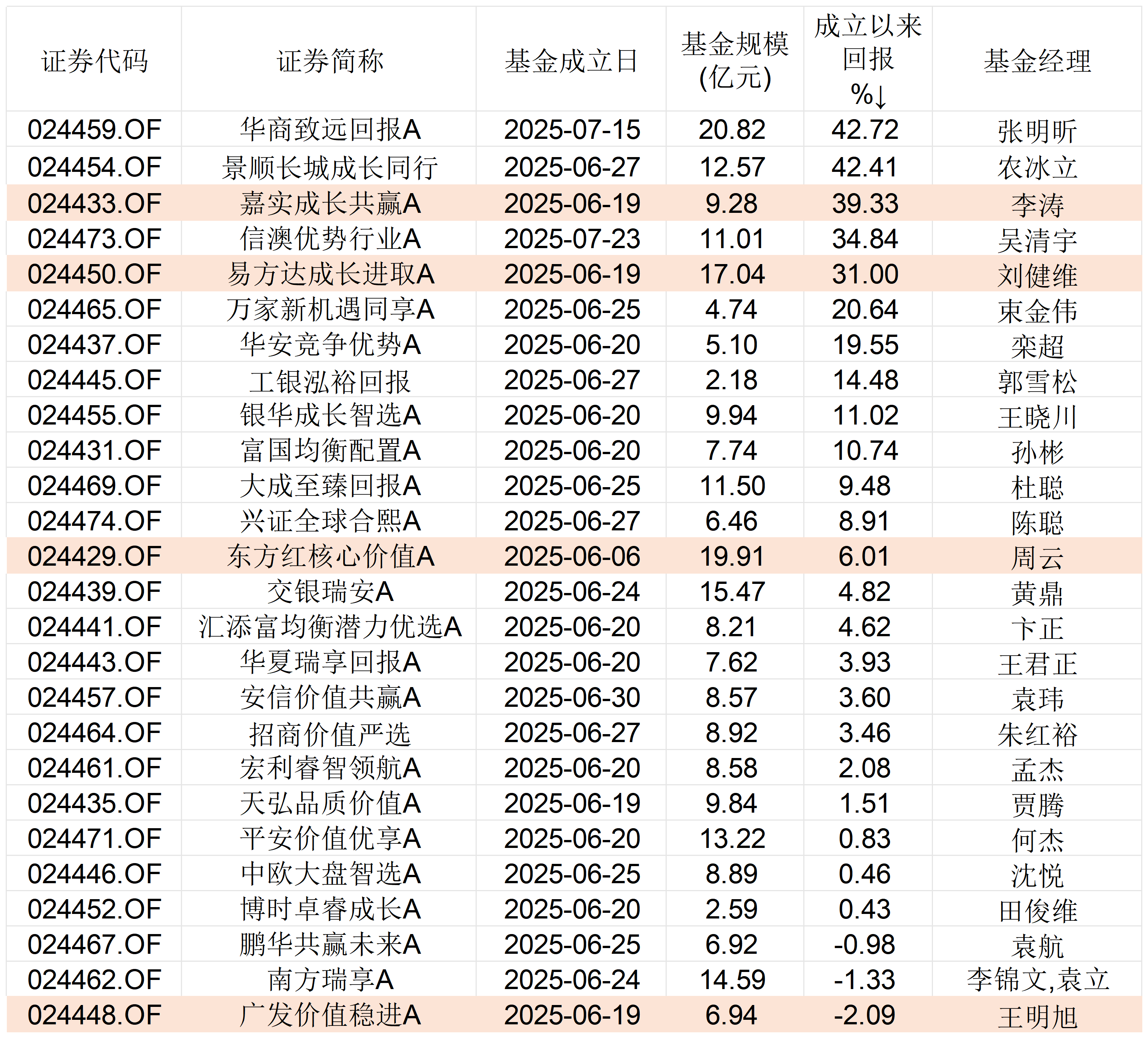 从业绩来看,虽然成立时间略有早晚,但26只浮动费率基金自成立就迎来了权益市场的回暖,因此也取得了不错的收益。截至9月24日,仅有3只基金目前仍是浮亏状态。业绩最好的是较晚成立的华商致远回报,成立以来回报率为42.72%,其次是景顺长城成长同行,回报率为42.41%。